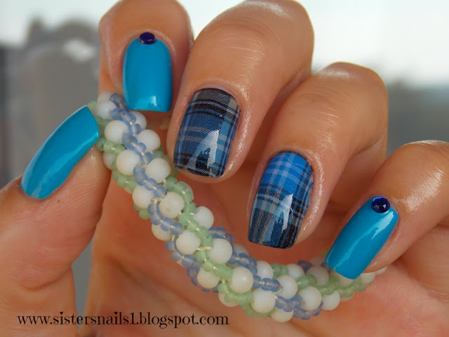 Oznaczone są symbolem QJ- 319 a możecie je kupić dokładnie TUTAJ a kosztują jedynie 1,69$. Macie do wyboru wiele rodzajów i kolorów kratki. Ja ze względu na moją miłość do niebieskości wybrałam właśnie taki odcień:)) Naklejki są o tyle fajne, że nie są podzielone na każdy paznokieć osobno, jak było to w przypadku poprzednich naklejek (ich recenzję możecie zobaczyć ). Można je ciąć do woli jako paseczki, kwadraty, czy jak kto woli dopasować do całego paznokcia jak zrobiłam to ja. Aplikacja ich jest niezmiernie prosta. Wystarczy zanurzyć wycięty fragment naklejki (oczywiście po uprzednim zdjęciu folii ochronnej) i po paru sekundach wyjmujemy naklejkę z wody i przyklejamy na paznokieć. Dziś dużo zdjęć, więc już dość pisania, zapraszam: